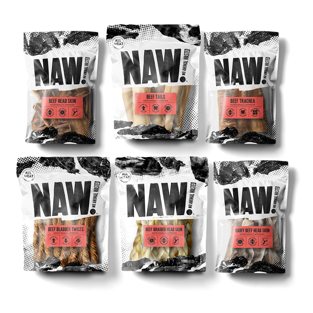 NAW’s Beef collection is packed with all-natural, high-protein chews made from 100% free-range beef. From tails to trachea to pizzles, it’s a full nose-to-tail line-up, naturally air-dried for rich flavour and real chew time.
